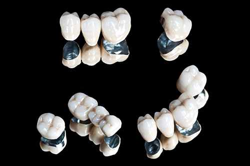 A dental crown is a type of cap that completely covers the tooth. It can be fitted to an individual’s damaged or decaying tooth or placed on top of a dental implant to replace a missing tooth. They can be made from full ceramic, zirconia, or metal. They are used to improve both function and aesthetics. As crowns surround all the surfaces of a tooth, they can be used for making more advanced adjustments to the position of teeth.