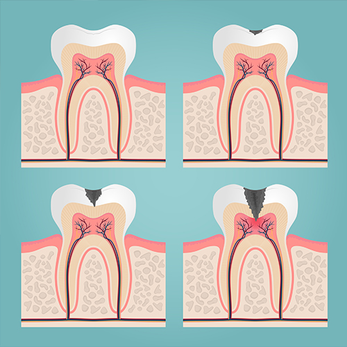 The root canal system is the name of the center of the tooth. Inside the root canal system, there is the dental pulp which contains the nerve and blood supply of the tooth. Infection of the dental pulp causes extreme pain. The reasons for this infection may be due to tooth decay, trauma, leaky fillings, or tooth crack. In all these situations bacterial penetration into the pulp causes an infection or inflammation.